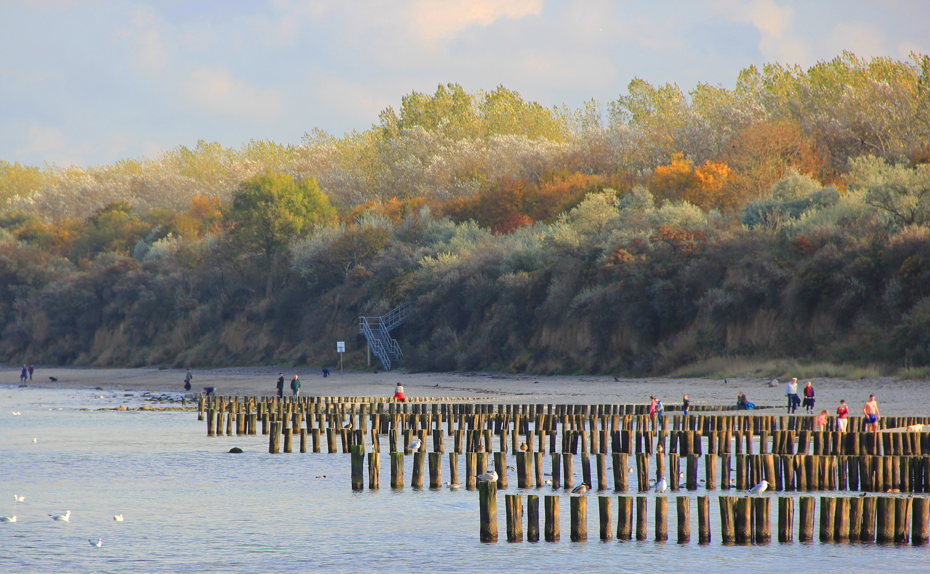 Zwischen den Buhnen ist das Meer sanft.